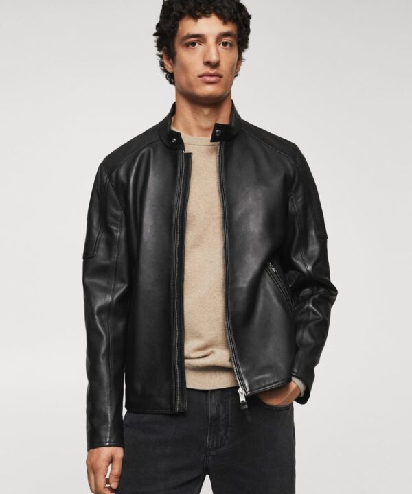 Zip-detail leather biker jacket